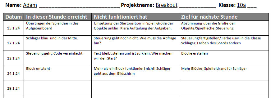 Projekttagebuch