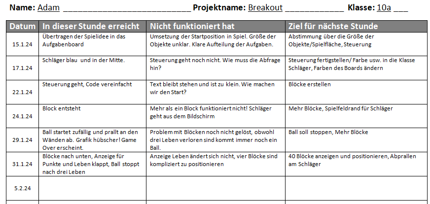 Projekttagebuch