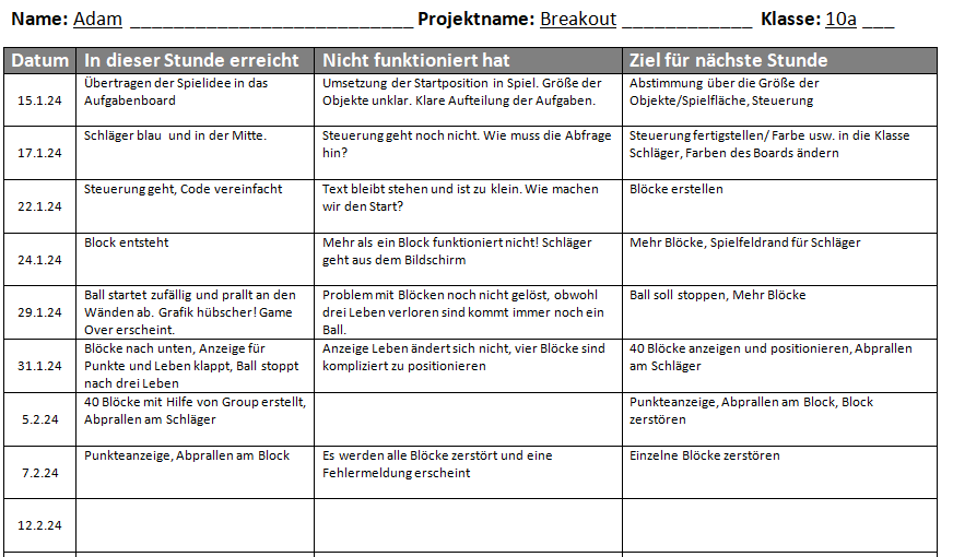 Projekttagebuch